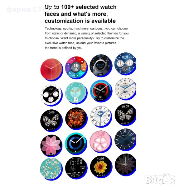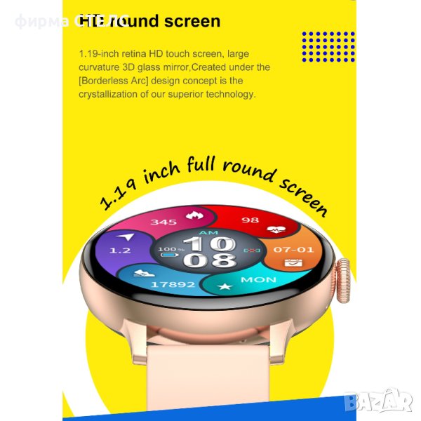 Смарт часовник STELS DT22, Водоустойчив IP68, 1.19 инчов HD Full touch control, Резолюция 390 * 390