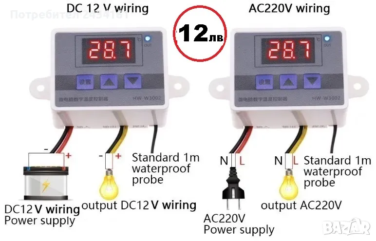 Вход за измерване: водоустойчива сонда NTC10K L=1 метър