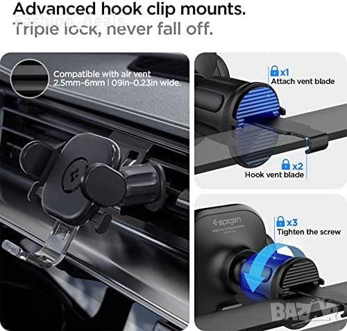 стойка за телефон за кола Spigen OneTap осигурява бързо и лесно решение за използване на телефона без ръце по време на шофиране. Тя се отличава с технологията OneTap, която фиксира телефона ви на място с еднократно закрепване, и с универсална поставка, която е подходяща за повечето смартфони и калъфи с всякакъв размер. Усъвършенстваният клипс с кука се монтира сигурно във вентилационния отвор на автомобила и не оставя следи, което го прави лесен за инсталиране и използване. Тази стойка за телефон не е съвместима със серията Samsung Z Fold.