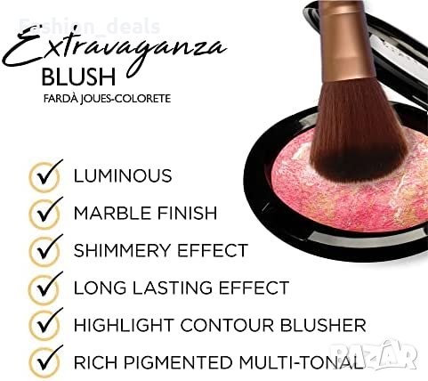 Extravaganza Cheek Contour Blush е луксозен и топъл руж, предназначен да придаде сияен блясък на бузите ви. Мултитоналната богата на пигменти смес се предлага в размер 9 г и многотонен розово-златист цвят. Формулата на меката пудра се смесва и надгражда, което улеснява постигането на перфектен румен грим, като същевременно хидратира кожата ви. Универсалните цветове са идеални за контуриране и подчертаване на различни черти на лицето, като скули, челюст, чело и нос. Висококачествените пигменти, разсейващи светлината, подчертават тена и са подходящи за всички тонове на кожата. Компактният дизайн я прави лесна за пренасяне и е чудесен вариант за подарък за приятели и семейство.