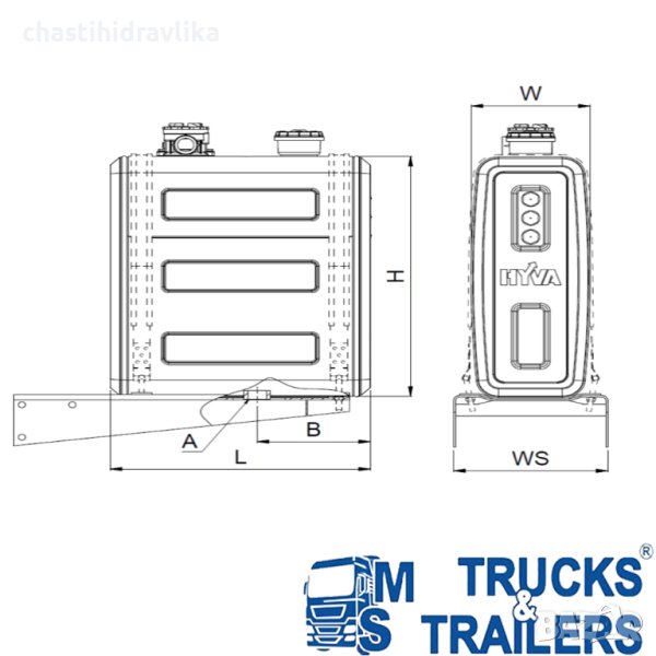 МАСЛЕН РЕЗЕРВОАР ЗА МОНТАЖ ЗАД КАБИНАТА HYVA 108Л КОМПЛЕКТ