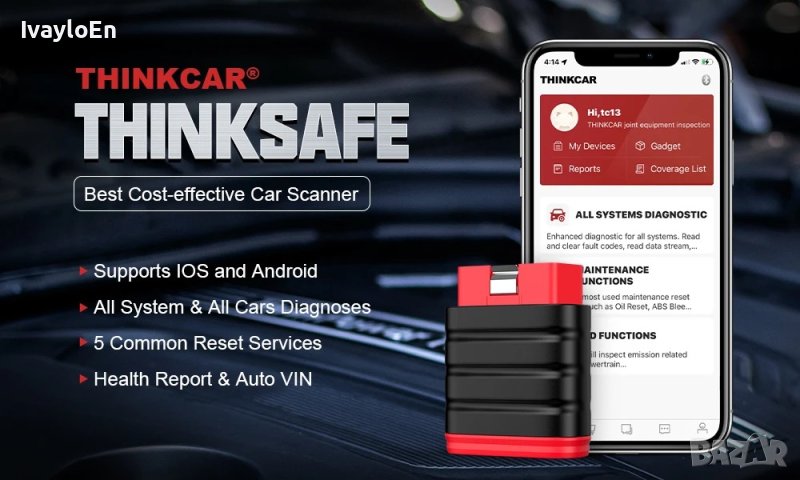 Thinkcar / THINKSAFE OBD2 скенер Bluetooth, четец на кодове