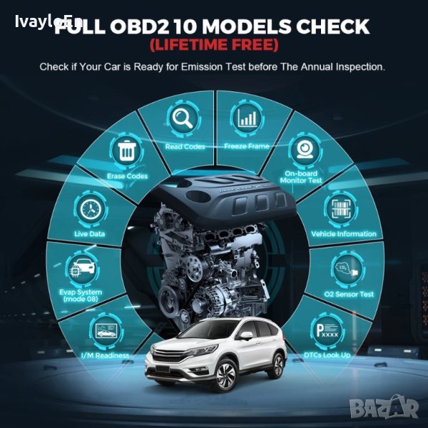 EVAP система : Открива всеки теч в EVAP системата на автомобила (не всички превозни средства поддържат EVAP тест и наличността на теста зависи от това какво е инсталирано на OBDII системата от производителя);