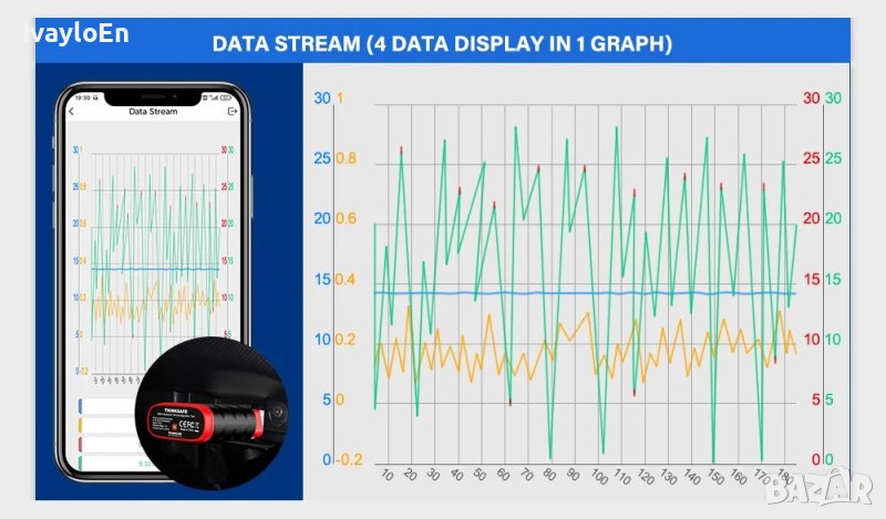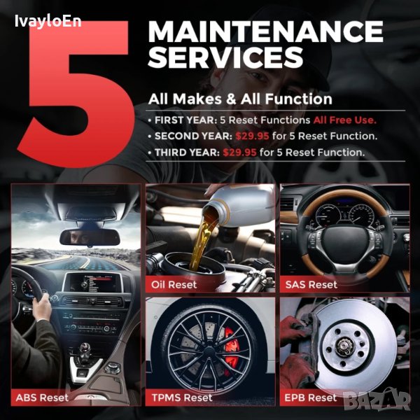 Внимание - обновяването на софтуера за диагностика на всички модули по колата, така също изчистване на кодове за грешки и живи данни е без допълнително заплащане.