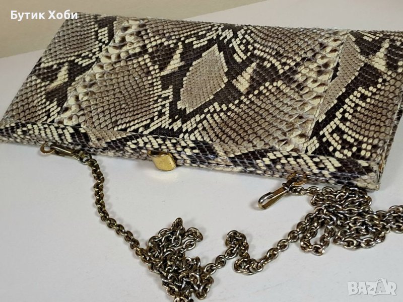 Чанта - клъч от естествена кожа, питон. Ретро, от 70-80-те години. В перфектно състояние е. Размери: 24,5 × 14см.