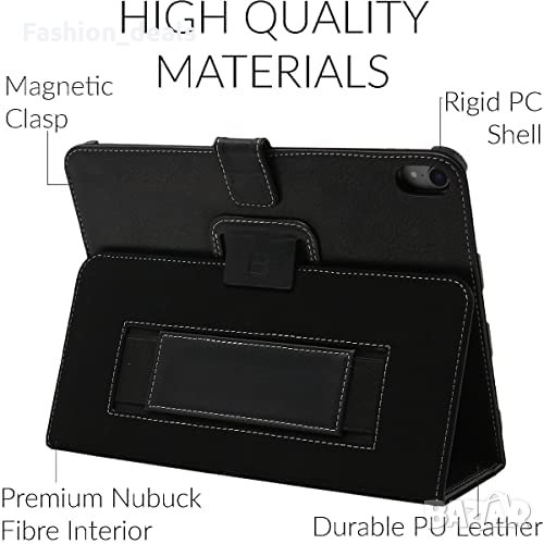 Този калъф Snugg за iPad 10-то поколение (2022) е стилен и защитен калъф, създаден специално за 10,9-инчовия iPad. Той е с кожен капак с флип стойка и магнитно затваряне за допълнителна сигурност. Калъфът е изработен от комбинация от изкуствена кожа и вътрешна част от влакна нубук, което го прави издръжлив и тестван при падане според стандартите за здравина. Калъфът има и две позиции на стойката, което го прави подходящ за работа и забавление, и предлага защита от надраскване и случайно изпускане.