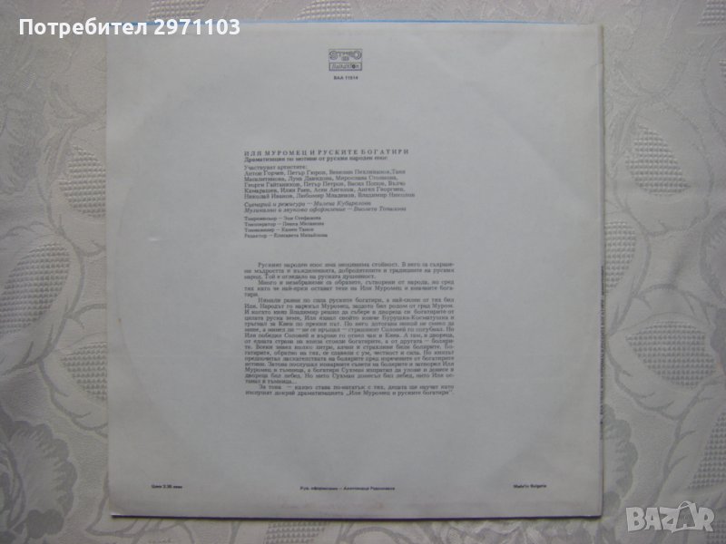 Грамофонна плоча - ВАА 11514 - Иля Муромец и руските богатири, драматизация по мотиви от руския народен епос