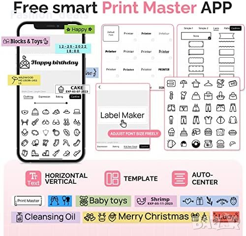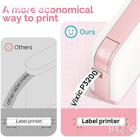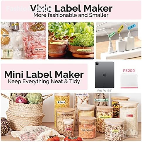 Vixic Mini Label Maker е компактен и преносим принтер за етикети, който може да се използва навсякъде и по всяко време. Той предлага непрекъснат печат и регулируеми дължини с автоматично центриране на текста, което ви позволява да отпечатвате етикети с ширина до 12 мм и дължина до три реда. Опцията за голям и ясен печат ви позволява да променяте размера на шрифта и да използвате максимално лентата за етикети. Етикетният принтер е свързан с приложение, което предлага богат избор от икони, шрифтове и рамки, а създадените етикети могат да се запазват без регистрация. Етикетният принтер P3200 е лесен за използване благодарение на Bluetooth свързаността си, която ви позволява бързо да отпечатвате етикети от смартфона си.