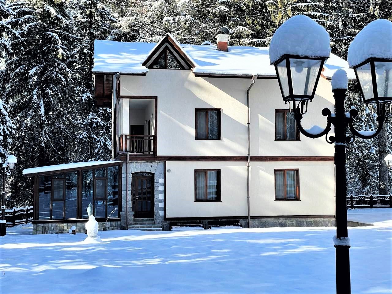 ТЕХНИЧЕСКИ ХАРАКТЕРИСТИКИ: Сградите са масивни със стоманобетонова конструкция. Всяка от тях е с външна и вътрешна топлоизолация. Покривите са скатни, алпийски тип и изпълнени от Цинк с доживотна гаранция. Дограмата е Shoko , петкамерна с двоен уплатнител. Във всяка една от вилите и в ресторанта има изградени отоплителни инсталации на нафта с испански котлета. За подовите настилки са използвани естествени материали, гранит, дъбово дюшеме и паркет. Довършителните работи са изпълнени с вкус и от висок клас материали.