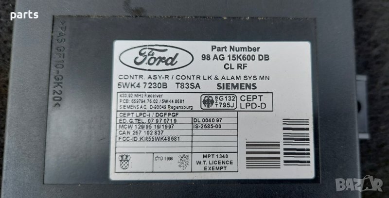 Модул Централно Заключване Форд Фокус - 98AG15K600 - 5WK47230B N, снимка 1 - Части - 40344480 Модул Централно Заключване Форд Фокус - 98AG15K600 - 5WK47230B N, снимка 2 - Части - 40344480 Модул Централно Заключване Форд Фокус - 98AG15K600 - 5WK47230B N, снимка 3 - Части - 40344480 Модул Централно Заключване Форд Фокус - 98AG15K600 - 5WK47230B N, снимка 4 - Части - 40344480 1/4