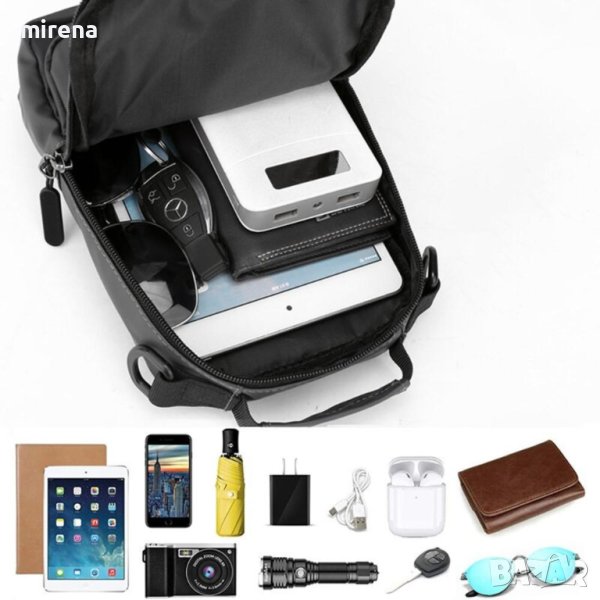 Многослоен голям капацитет: може да побере 9,7-инчов IPAD и IPAD MINI, портфейл, чадър, минерална вода, очила, ключове, мобилен телефон, цигара, запалка, музикален плейър, слънчеви очила и др.
