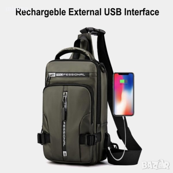 2022 Мъжка чанта за през рамо против кражба, USB зареждане, водоустойчива, многофункционална чанта з