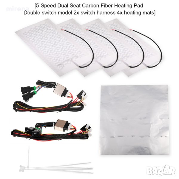 Нагревателна подложка за кола Нагревател с 5 предавки DC 12V 4 части Въглеродни влакна