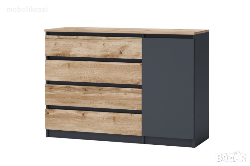 Скрин Лео 7 е с четири големи чекмеджета и врата. Изработен е от висококачествени съвременни материали и се предлага в две цветови комбинации.