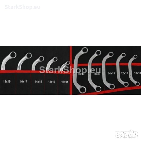 Комбинирани гаечни ключове: 6, 7, 8, 9, 10, 11, 12, 13, 14, 15, 16, 17, 18, 19, 20, 21, 22, 23, 24, 26, 27, 28, 30, 32 Гаечни ключове TORX 6×8, 10×12, 14×18, 20×24 Гаечни ключове с огънати халки 6×7, 8×9, 10×11, 12×13, 14×15,x16x17, 18×19, 20×22