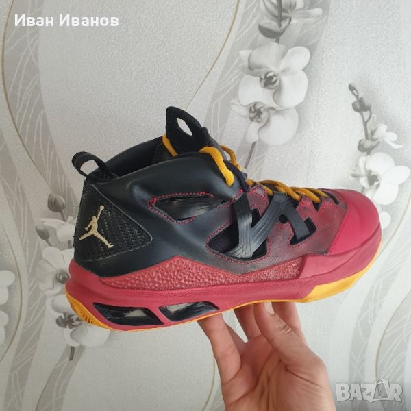 JORDAN MELO M9 551879-028Използвани , с минимални следи . без сериозни забележки , с много леки козметични Само за фенове на Майкъл Джордан Красиви , модерни , удобни За реални снимки питайте Горна част от кожа и синтетична кожа за превъзходна издръжливост и комфорт. Технология Dynamic Fit с ленти Flywire за опора за увиване на крака. Сандвич мрежеста подплата за дишащ комфорт и вентилация. Междинна подметка от филон с елементи на петата и предната част на стъпалото Nike Zoom за чувствително омекотяване и защита от удари. Твърда гумена външна подметка с преувеличен модел на сцепление на рибена кост за издръжливост и по-лесни преходи
