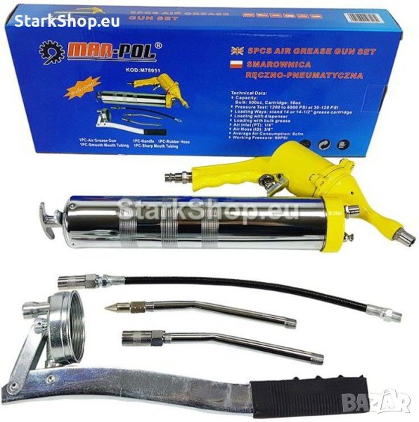 Професионален пневматичен пистолет за ръчно смазване 400 мл Mar-Pol