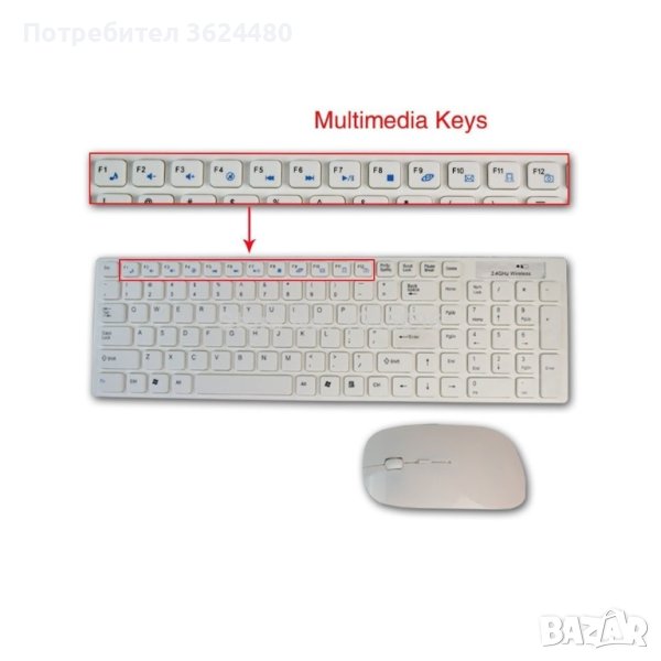 Клавиатурата и мишката работят с по една батерия ААА (Батериите не са включени