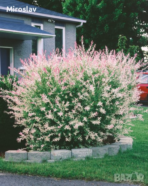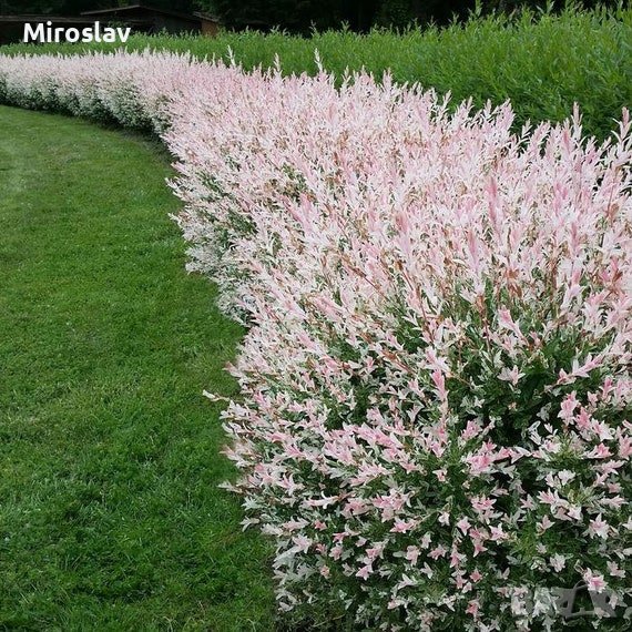 -Тази върба е доста необичайна по своя външен вид, тъй като е разпръснат храст.Цветът на листата е в 3 цвята-Бяло зелено и розово.