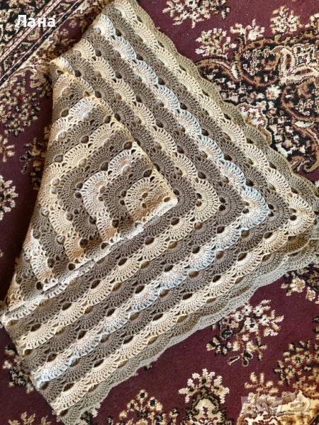 оригинален дамски плетен шал, плетено одеяло → Обява 40352577