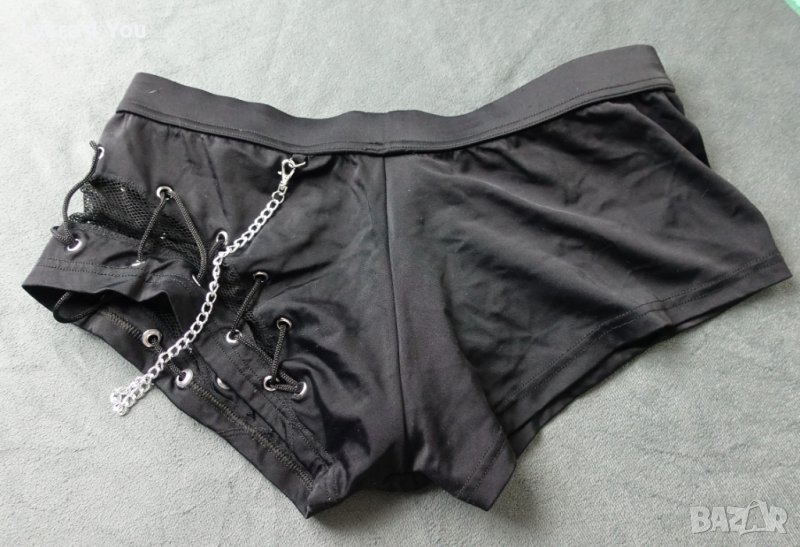 Като нов, мъжки еротичен модел SvenJoyment M размер (талия 33,5см. с еластичност). Материята е плътна и еластична с полиамид и ликра, тюлена мрежа и връзки странично. Отпред с цип, който може да се разкопчава. Верижката може да се откача и маха, ако не допада на някой.