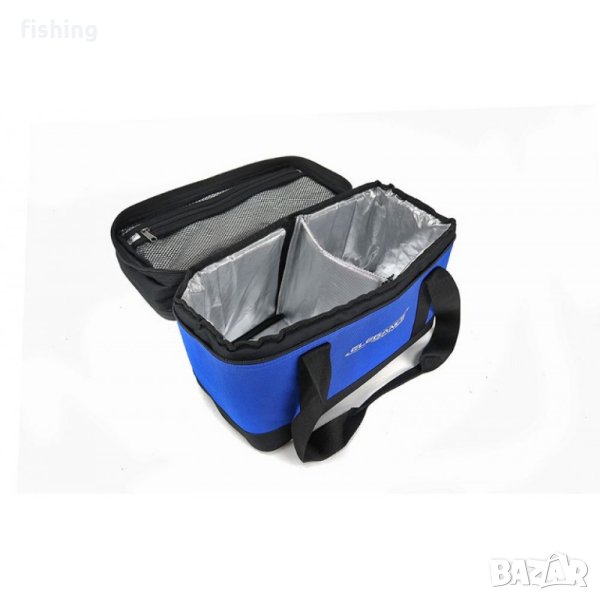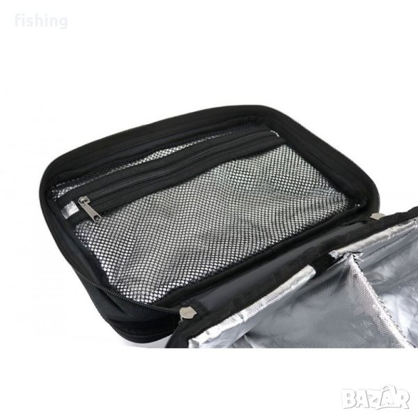 Първокласна и дебело подплатена термоизолирана чанта от новата ни гама "Formax Elegance Feeder Pro Series" с размери 37x17x29 cm. Долната най-голяма част на чантата е термоизолирана и има велкро преграда, която разделя това пространство на две части, а под самата покривка, тоест горната част, има и мрежест джоб, който се затваря с цип. Отгоре, в горната част (която не е топлоизолирана) също има допълнително пространство, в което има две кутии за стръв с капаци, като това пространство също има собствен капак или затваряне с цип, а в този капак има и мрежа джоб с цип. Разбира се, тази чанта има и здрави дръжки за носене с велкро закопчаване. Независимо дали искате да запазите примамките си свежи, напитките си студени или евентуално храната си топла - тази чанта е наистина правилното решение.