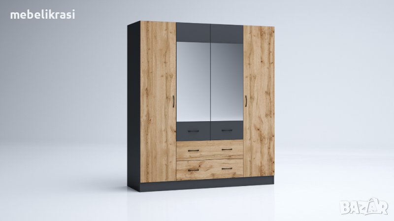 Гардероб с 4 крила, чекмеджета и огледала.