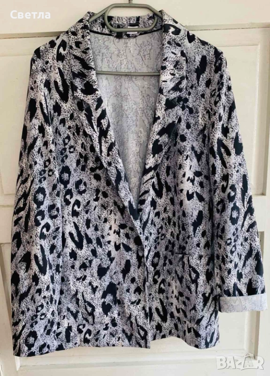 3. Дамско сако, леко, плат памук-щампа. € 9,Р-ри М-L и в см – ГО-102см; Дължина 72см.
