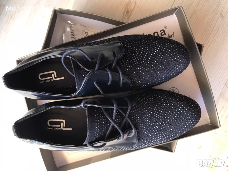 Стилни обувки с камъни Ana Lublin , цвят тъмно син , размер 41 стелка 26.5 см , изпращаме с Еконт или Спиди с опция преглед и тест