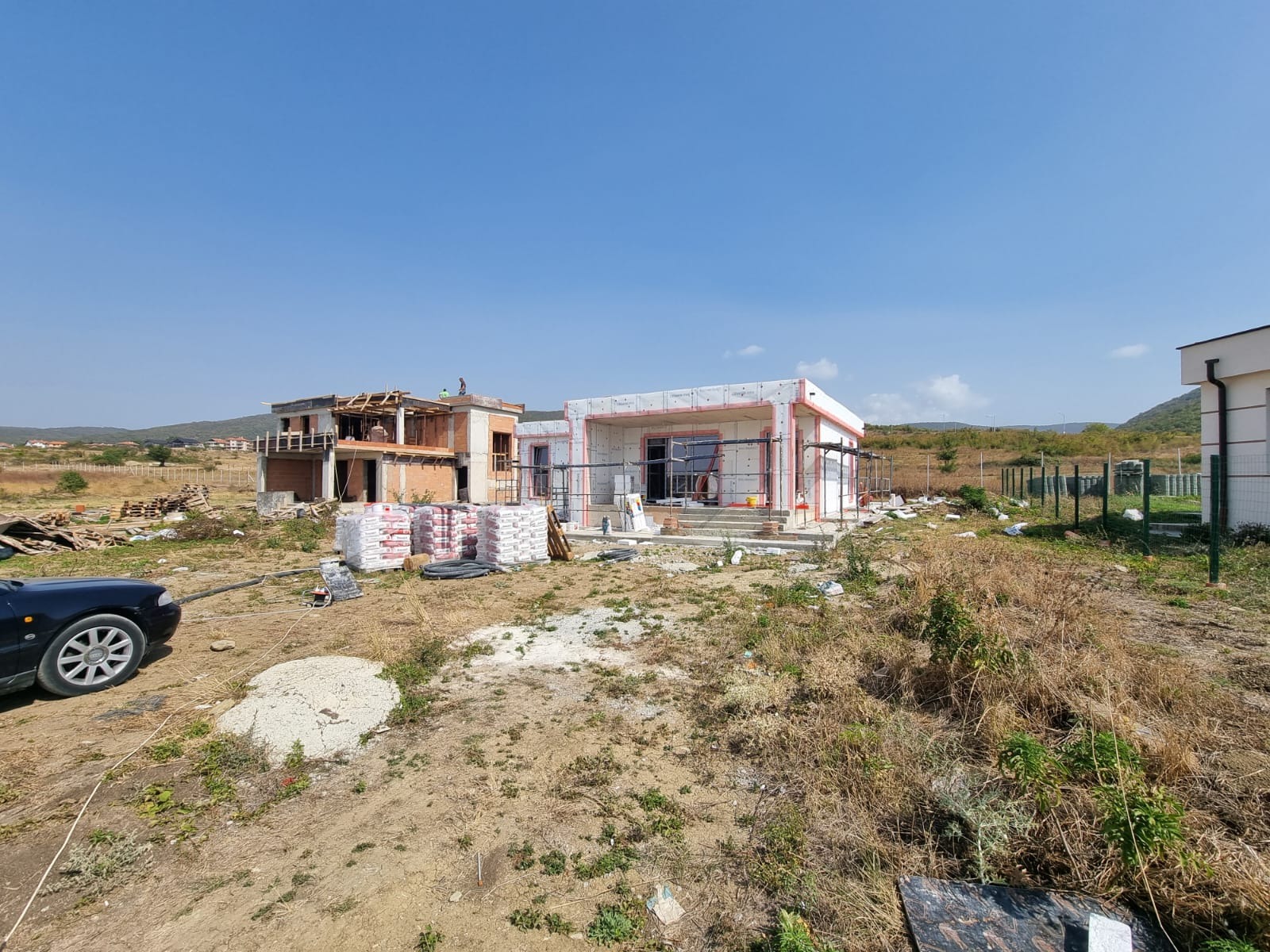 Къщите са на шпакловка, без гипсокартон, с топлоизолация, поставена дограма, покривът е изолиран.