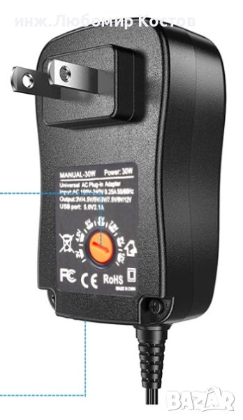 Мощност: 30W Изходен волт: 3V 4.5V 5V 6V 7.5V 9V 12V