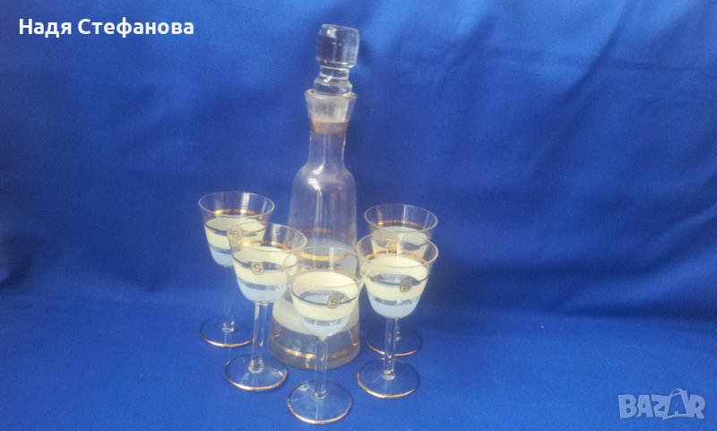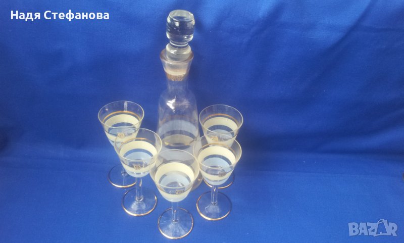 Ретро ракиен комплект бутилка с тапа и 5 чашки, Стинд - София