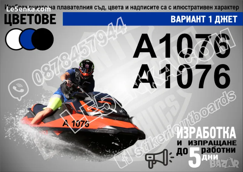 Комплект от два регистрационни надписа за джет – общата цена е 19 лв. Комплекта