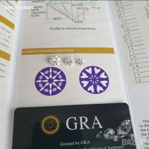 Мойсанит, сертификат за качество GRA.