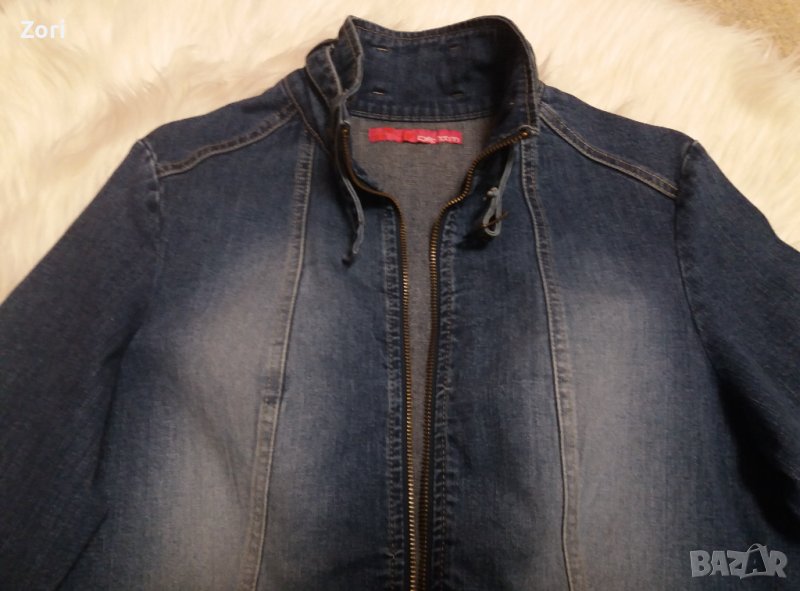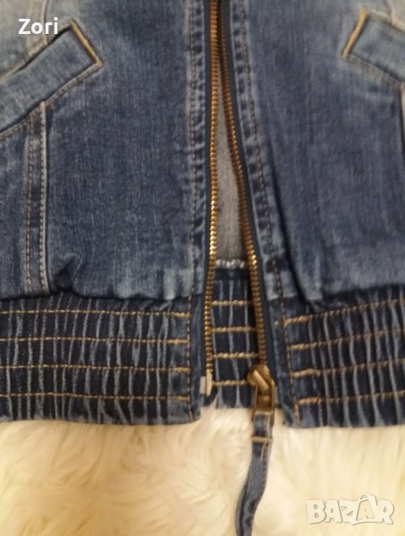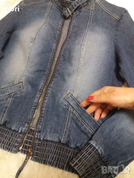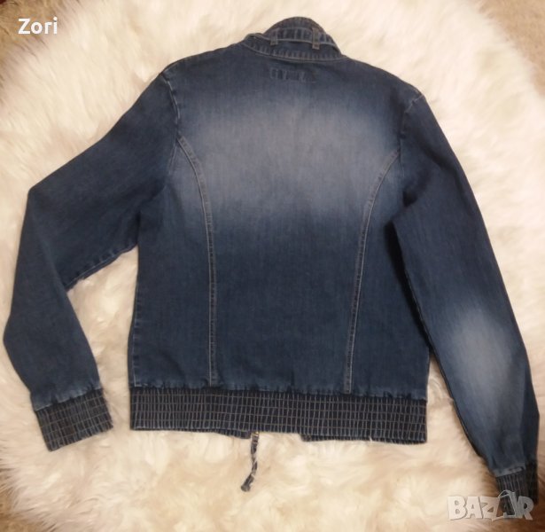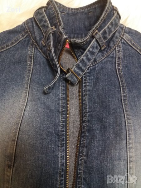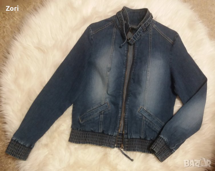 Тъмносиньо дънково яке с висока яка и ластик на ръкавите → Обява 40367035