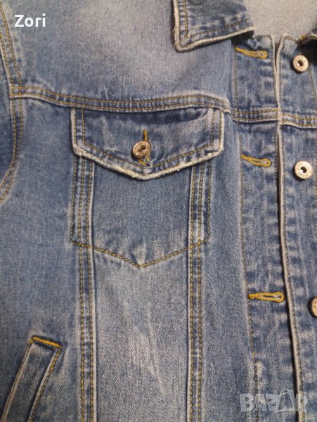 Якето е от светъл, еластичен деним с накъсан и изтъркан ефект. От вътрешната страна има допълнителни 2 джоба.
