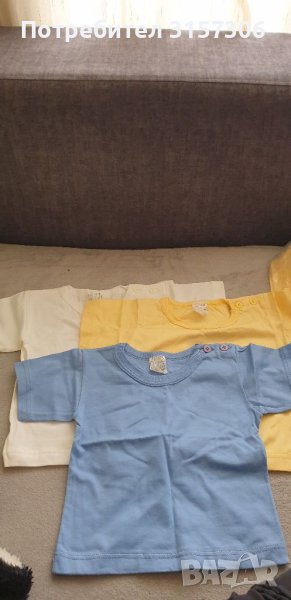 Бебешки блузки от трико(сини,бели и жълти)за 12месеца 74рр,розови 18мес.80рр по 3 лв Камизолки 68 рр 2лв бр