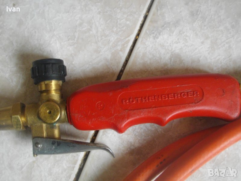 Цена на горелка за хидроизолации на газ пропан-бутан, испанска професионална на Ротенбергер /ROTHENBERGER - Made in SPAIN/, с маркуч и редуцир вентил - 299 лв, само горелката без вентила и маркуча - 199 лв. налично