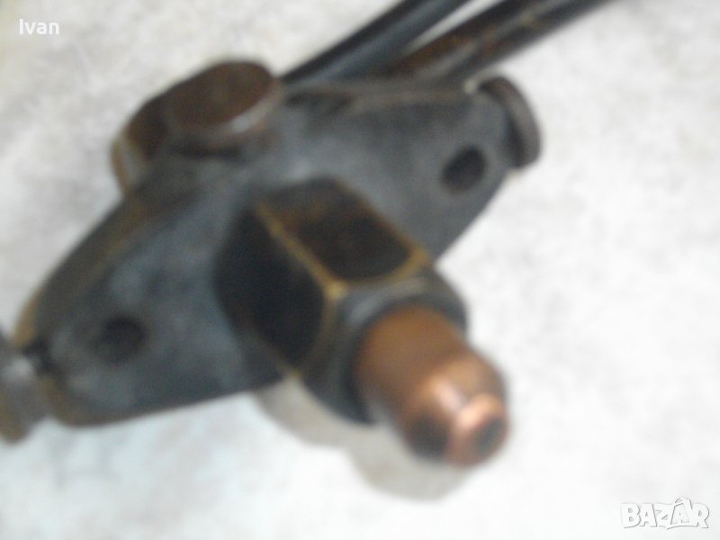 Изцяло от бронз, заден спирателе кран - бронз, Отпред главата е с масивен стоманен предпазител/стойка за стоене в избрано положение на горелката. Поставена дюза медна оригинална с 1 малка дупка.