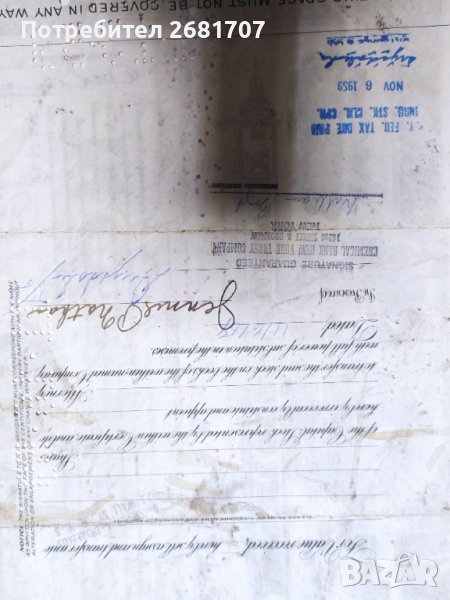 Стар сертификат за захар( кубински). MANATA SUGAR COMPANY . Сертификатът е от 1959 г. Оригинален