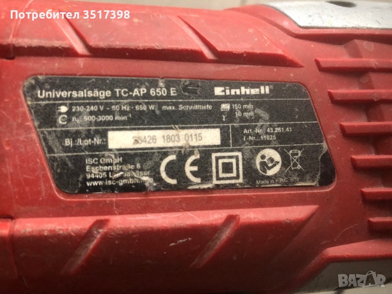 Саблен трион Einhell, снимка 1 - Бормашини - 40369445 Саблен трион Einhell, снимка 2 - Бормашини - 40369445 Саблен трион Einhell, снимка 3 - Бормашини - 40369445 Саблен трион Einhell, снимка 4 - Бормашини - 40369445 Саблен трион Einhell, снимка 5 - Бормашини - 40369445 1/5