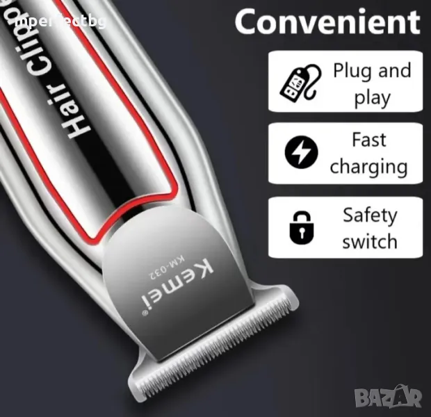 БЕЗЖИЧЕН МОДЕЛ! Известният KEMEI е фантастичен и стилен професионален помощник, клас А, който професионалистите в цял свят харесват и използват. Това може би е най-продаваната машинка която може да се използва за изправяне на ръбовете, както и за перфектен финиш. Мощният, но почти безшумен двигател ви помага да направите едно приятно и дори и неусетно за вас и клиентите подстригване, което прави всяка работа едно истинско удоволствие. Острието е изработено от Титании, самонаточващо се така че остава остро и запазва лъскавата си повърхност за дълго време. Универсален дизайн, хромирана повърхност на тялото. ’’KEMEI’’- е перфектният избор за много фризьори, които искат професионални, най-добри резултати.