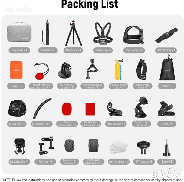 Neewer - 50 в 1 - комплект за екшън камера - GoPro Hero11, 10, 9 8 7 GoPro Max, Fusion Insta360 Osmo