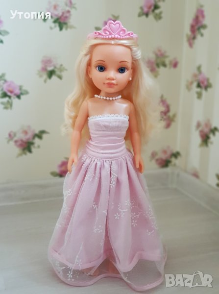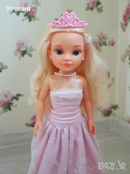 Кукла Nancy by Famosa Кукла принцеса с оригинален тоалет. Краката и ръцете ѝ са статични (не се сгъват). Косата е отлично сресана и чиста, гъста, податлива на сресване и прически. Липсва едната обеца, както и обувките ѝ. Общо състояние: отлично. Цена: 35 лв