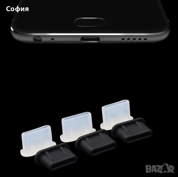 Чисто нови висококачествени, силиконови, предпазни тапи за смартфони, таблети и други устройства с USB портове Type-C, Micro USB и iPhone. Тапите предпазват вашето устройство от замърсяване, като влизане на прах, вода и други. Налични в бял и черен цвят.