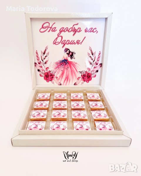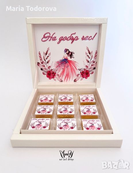 Може да смените текста на капака и бонбоните.Предлагаме и малки кутии с 18бр. бонбона на цена 25лв
