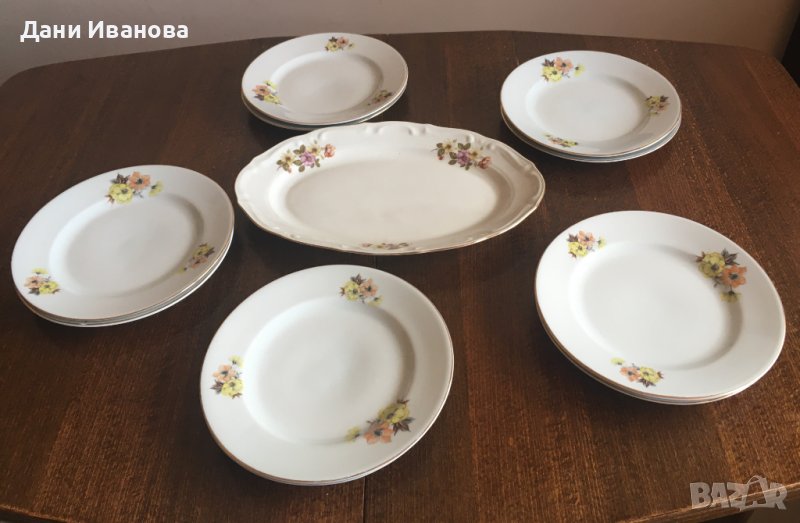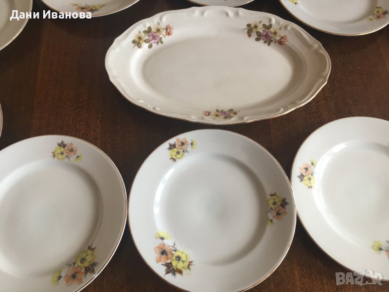 Сервиз 11 порцеланови чинии - 10 за основно ястие и една голяма елипса → Обява 40377253