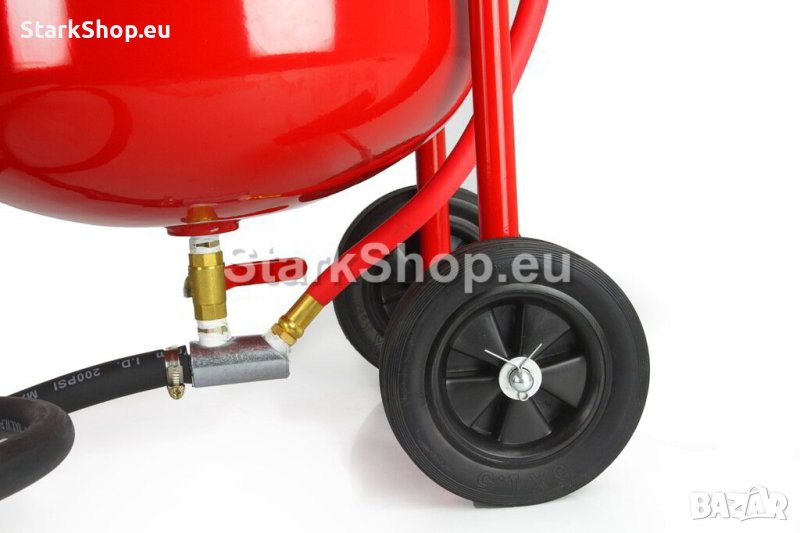 Пясъкоструйката е оборудвана с гумени колела и удобни дръжки, които улесняват движението и повишават комфорта на оператора на уреда.