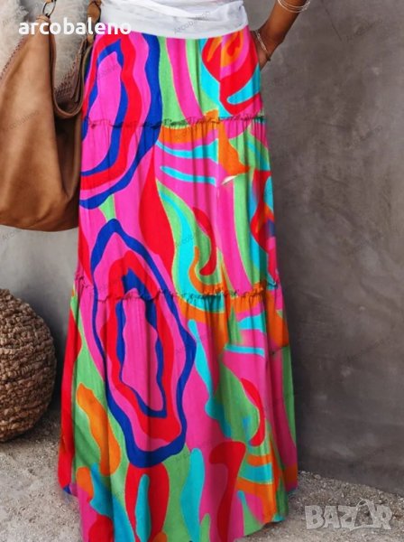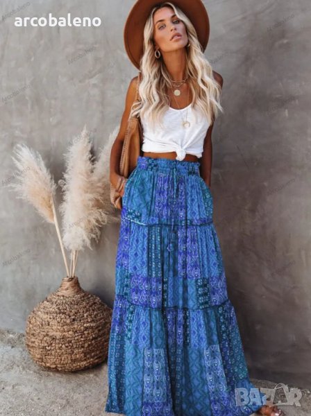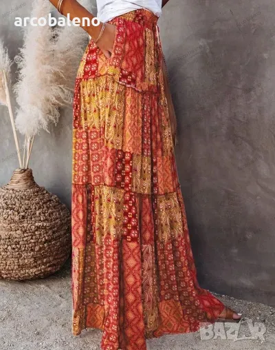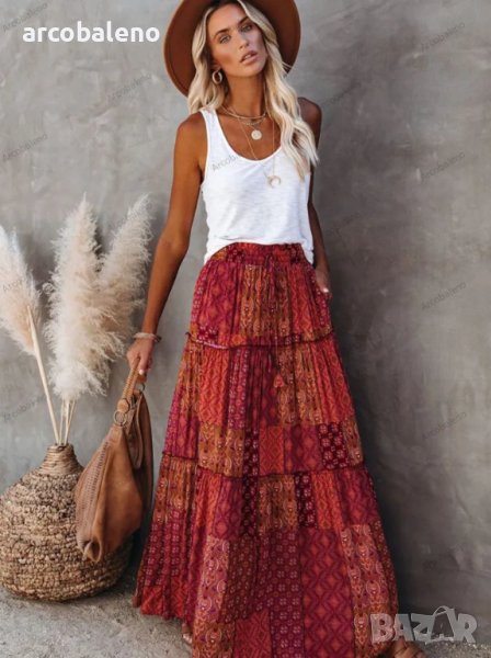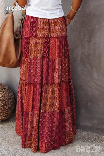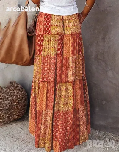 Дамска пола в бохемски стил Европейска и американска свободна ежедневна дълга пола с висока талия е подходяща за много поводи, а семплият дизайн прави скучния сезон цветен и интересен. Разнообразието от опции за колокация ви прави уверени и красиви. Прилепва плътно, без да ограничава движението ви.