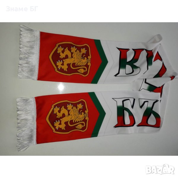 Патриотично шалче България с образите на Васил Левски и Христо Ботев. Шалчето е двойно, двустранен печат, с бели ресни.